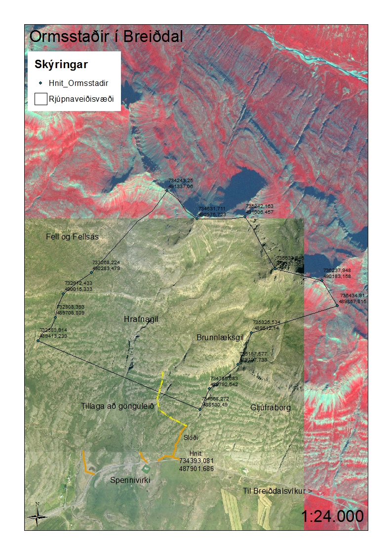 Ormsstaðir í Breiðdal er skammt innan við Breiðdalsvík. Jörðin er í eigu og umsjón Skógræktar ríkisins, utan afmarkaðs svæðis neðan þjóðvegar. Aðgengi að veiðisvæðinu er um slóða upp frá þjóðvegi 1, sjá kort. Frá slóðenda er eingöngu fært fótgangandi í veiðisvæðið, sem er um 500 ha að stærð. Veiðisvæðið nær frá brekkubrún og upp í fjallstinda. Tillaga að gönguleið er sýnd sem brotin lína á korti. Svæðið er brattlent og frekar erfitt yfirferðar með djúpum giljum sem skera landið. Fyrir veiðimenn sem koma lengra að eru gistimöguleikar á Hótel Bláfell, Breiðdalsvík, 465 6770, http://www.hotelblafell.is og á Hótel Staðarborg, http://www.stadarborg.is
